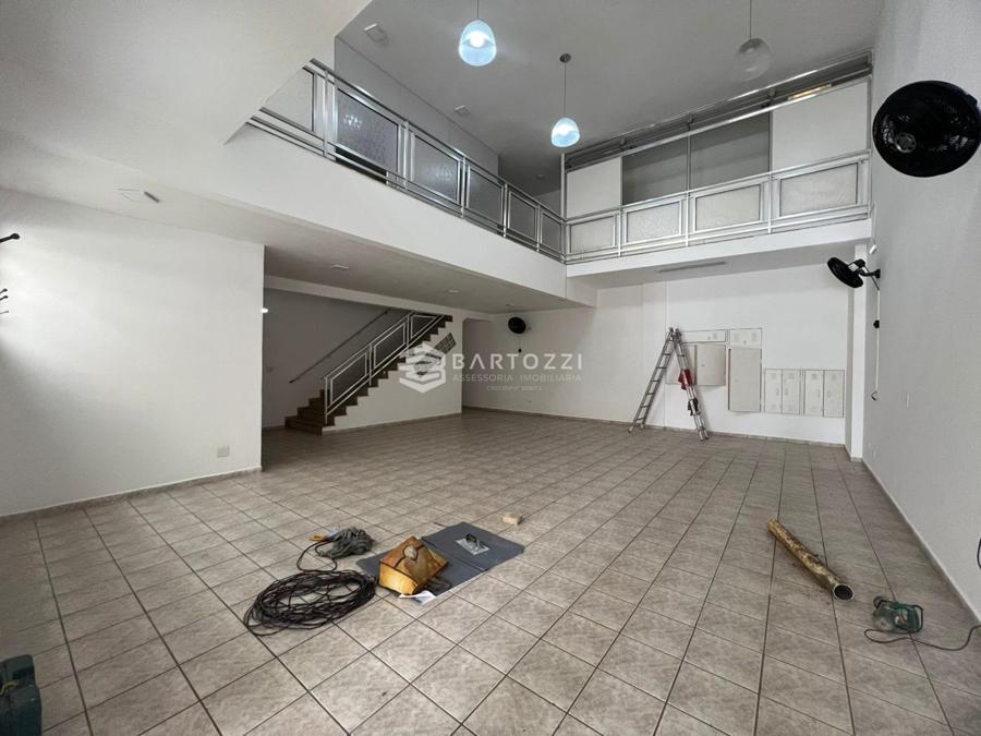 Salão comercial com área de 140m², mezanino, 2 salas, copa e cozinha, 3 vagas de garagem.