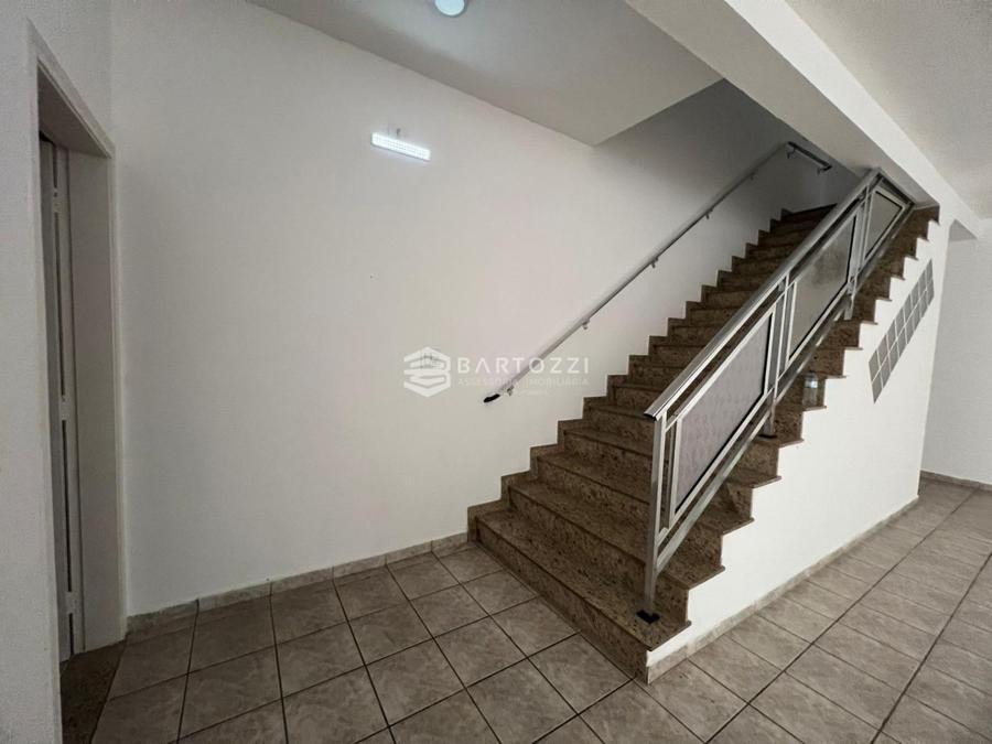 Todo em piso frio, bem iluminado, com ventiladores e escada com corrimão.